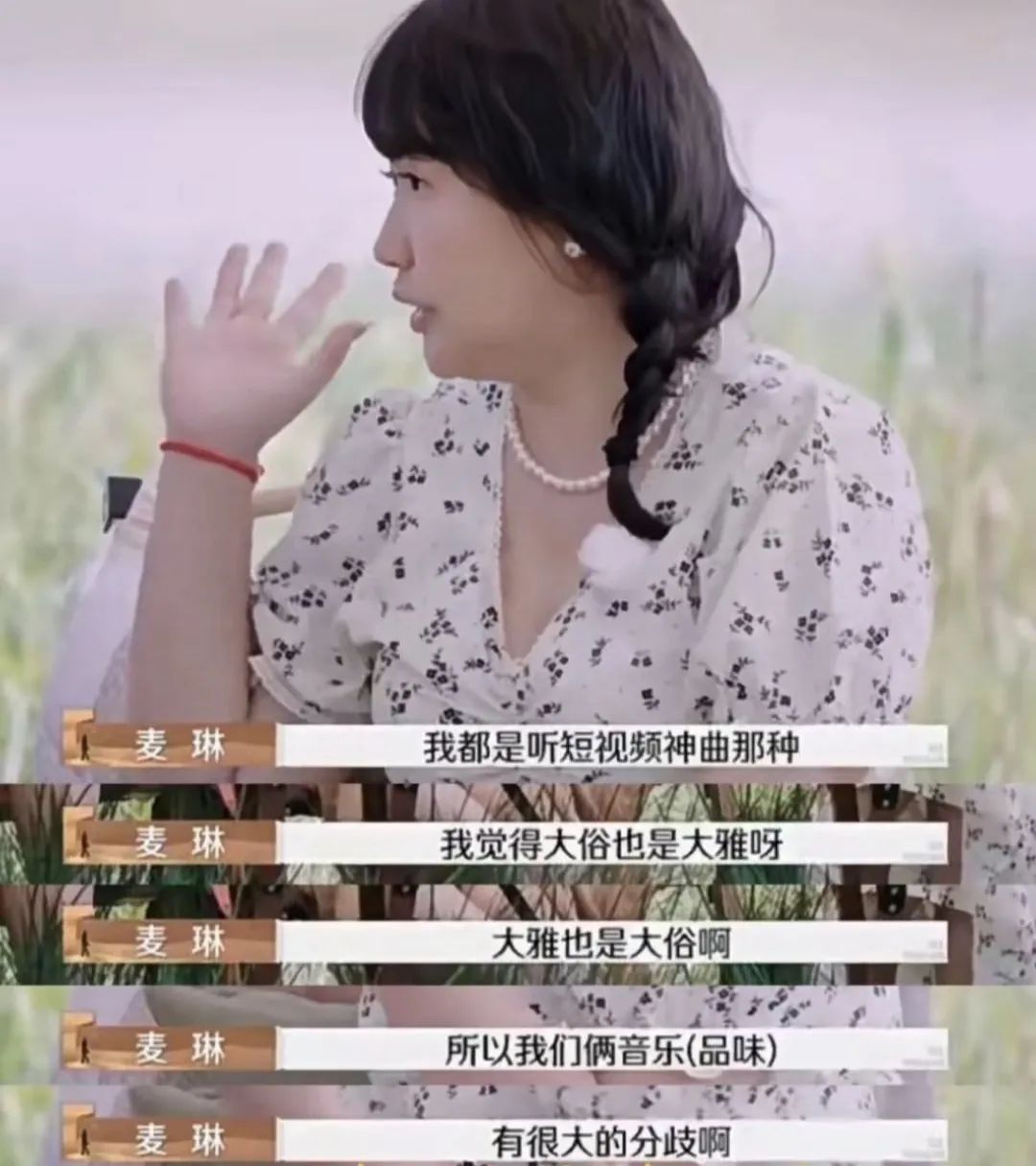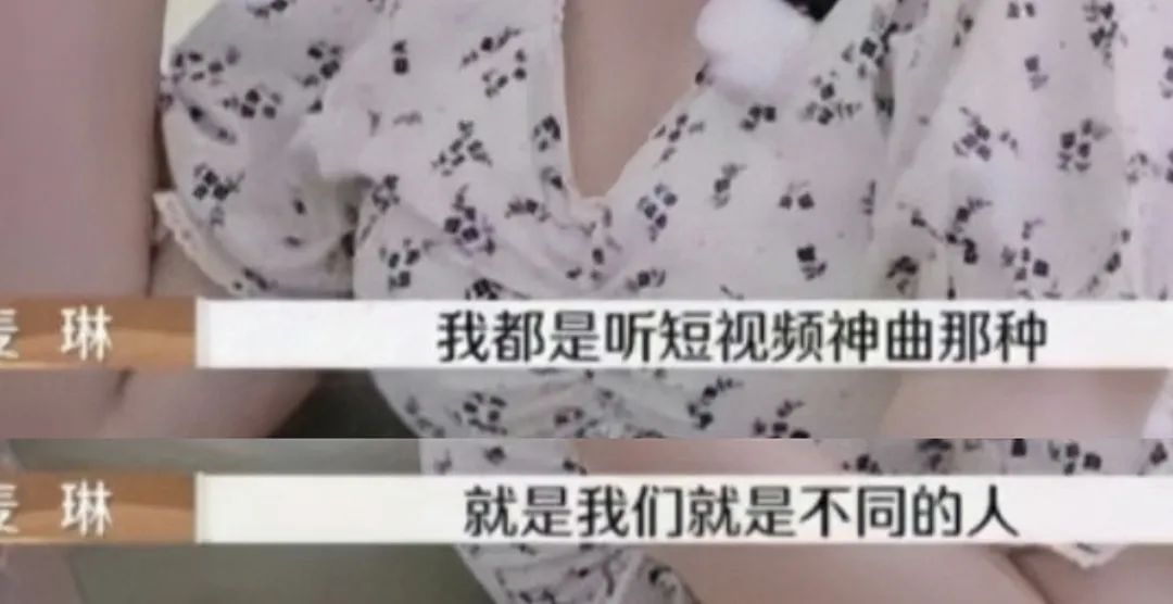 在与张泉灵的对谈中,麦琳也表示她没什么精神追求,就是一个只关注柴米油盐的、“俗气”的人。她对李行亮的音乐不感兴趣,“听两个小时会生不如死”,只爱听抖音神曲,也懒得了解李的精神世界,觉得音乐要能转化为钱的才是好的。