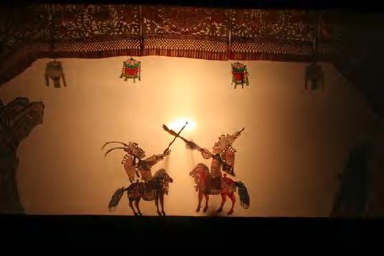 一方幕布就是一个戏台,尺把长的皮片人儿就是演员,明亮的灯光穿过皮影,人物、花草、楼宇在画布的另一端,映出栩栩如生的世间百态……这就是皮影戏。