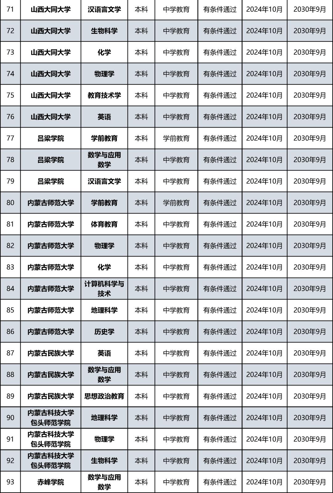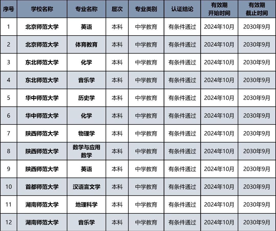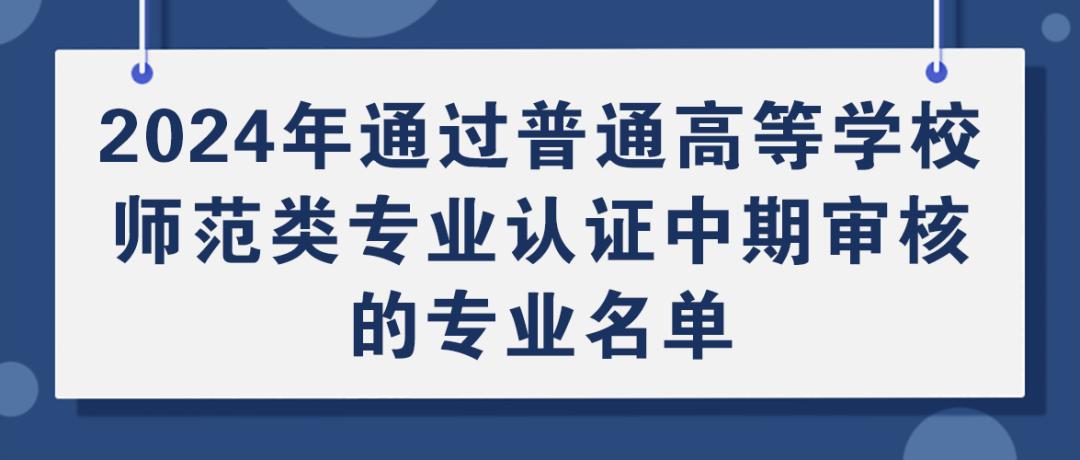 近日,教育部公布2024年通过普通高等学校师范类专业认证及认证中期审核专业名单。