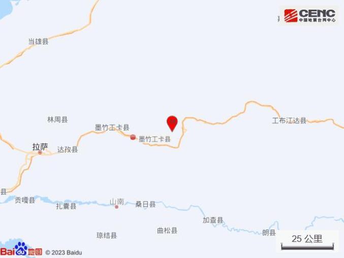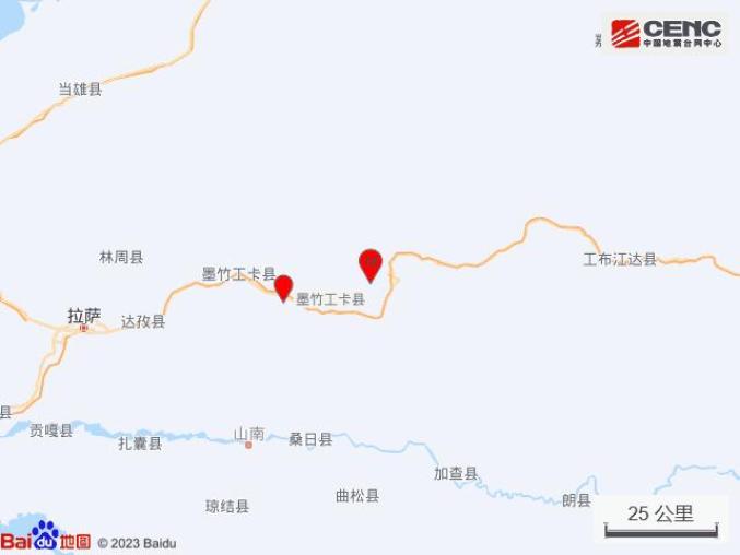 据中国地震台网消息,11月18日15时1分在西藏拉萨市墨竹工卡县发生4.4级地震。5分钟后,15时6分在西藏拉萨市墨竹工卡县发生4.1级地震。