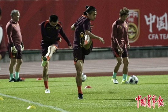11月17日晚,国足在厦门备战世界杯预选赛亚洲区18强赛对阵日本队的比赛。李磊、张玉宁两人将因伤缺席本场比赛。中青报·中青网记者 李隽辉/摄