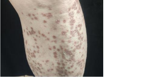 男,59岁,因“躯干、四肢皮疹1年半,加重半年”入院。