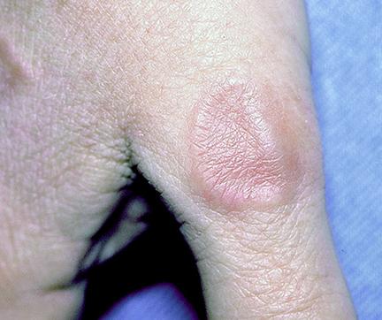 (1)局限型:红色或肤色、环形或弧形斑块,其边缘呈绳索样、硬度中等,伴中央消退。