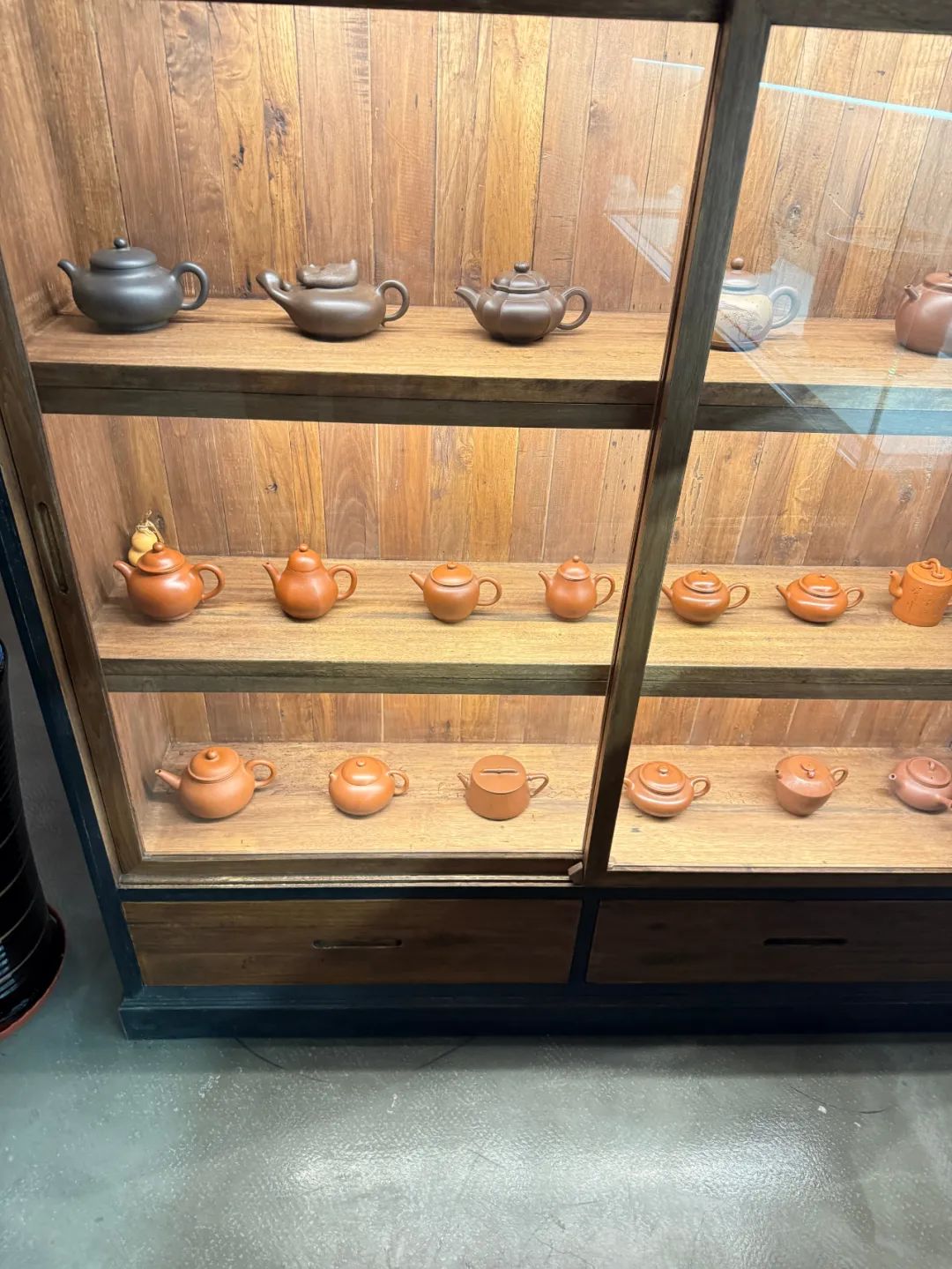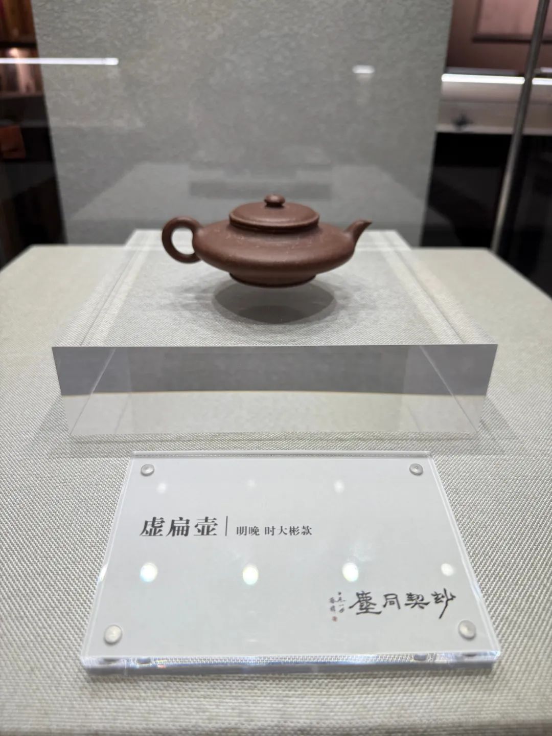 除了明代至近现代的锡器、德化白瓷外,展馆还收藏了另一大类的茶具——紫砂器具。作为中国茶史上里程碑般的存在,紫砂器具以其茶香浓郁持久、保温时间长等特点俘获了无数爱茶人士的心。展馆二层以镇馆之宝——明晚期时大彬虚扁紫砂壶最为吸睛。此壶为紫砂壶形制中少见的极扁造型,线面屈曲和谐、意趣盎然。制壶大家时大彬以高超技艺和创新慧眼,赋予了这件紫砂壶极高的艺术价值,可谓“千奇万状信手出,巧夺坡诗百态新”。据展馆投资人、博艺文化艺术园区管理(黑龙江)有限责任公司董事长尤龙介绍,在明清时期,能拥有一把时大彬紫砂壶的非富即贵。“时大彬所制紫砂壶现今公开尚存十六七器,每一把紫砂壶都属于独一无二的艺术品,传世极少,异常珍贵。”据了解,这件时大彬制作的虚扁紫砂壶也是东北地区首次展出。