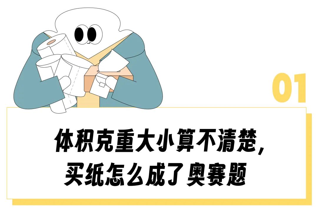 而在这股缩水通胀中,你对着纸巾算来算去,从体积到克重再到大小,纸巾就这变成了一道算不清理还乱的奥赛题。没有标准答案,难算性价比,打工人晕晕乎乎以为自己薅到了羊毛,实则发现自己才是那只羊,于是干脆直接列出纸巾四大天王的四宗罪: