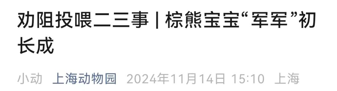 他也恳切地呼吁:“作为一名上海动物园的科普志愿者,呼吁大家从我做起,为了‘军军’和其他野生动物都能健康快乐地成长,请不要投喂。让我们始终保持一颗敬畏之心,尊重野生动物的自然习性和生存空间,实现人与自然的和谐共生。”