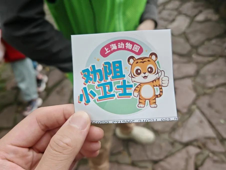 高密度的宣传也起到了不错的效果,一位保安对记者表示,最近这几天游客投喂的情况明显有所改观。记者在现场看到,在游览过程中,有一位小朋友牵着妈妈的手说:“我们不能投喂军军。”一旁的志愿者注意到后,主动上前夸赞了他,并给他送上了一张“劝阻小卫士”的贴纸。