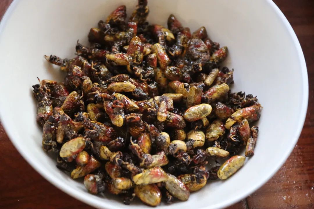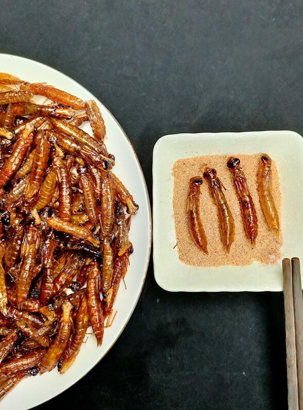 方锐 摄蜂蛹、蚂蚱、蚕蛹、竹虫