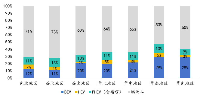 从地域分布上看,我国东北、西北地区汽车市场规模超200万辆,而纯电汽车渗透率仅12%,低于全国平均水平。当地人口密度较低,长途出行需求较高,冬季低温寒冷,纯电车型面临续航里程快速衰减的挑战。而混合动力汽车综合续航里程长,受温度影响较小,契合当地市场需求的同时可实现节能减排。