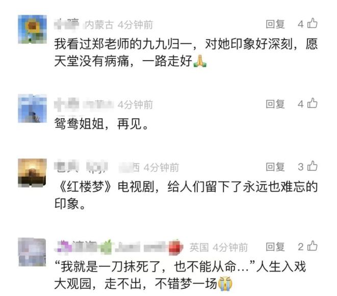 87版《红楼梦》鸳鸯扮演者郑铮去世