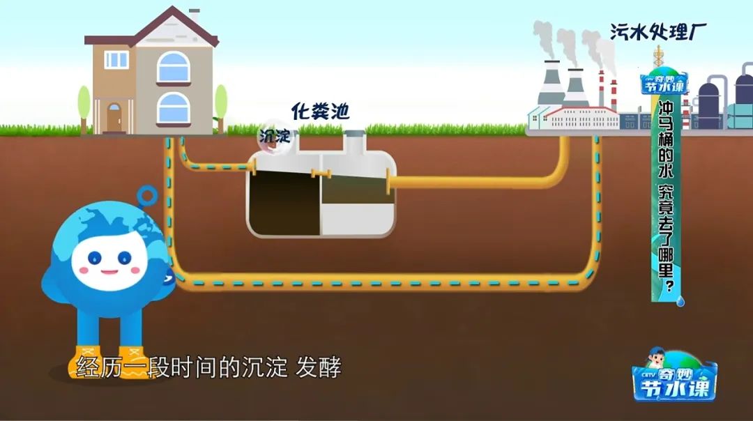 我们每天产生的生活脏水通常会被排入污水管道,顺着管道它们又会被运送到污水处理厂,但是冲厕所的水是不允许直接排入污水管道的,因为冲厕所的水里含有粪便和尿液,所以要先顺着下水道排进埋在地下的化粪池中,经历一段时间的沉淀、发酵,等到上层的污水相对变清,再通过化粪池的溢流孔进入污水管道,跟其他污水一起被运送到污水处理厂,接受净化消毒后再被利用。