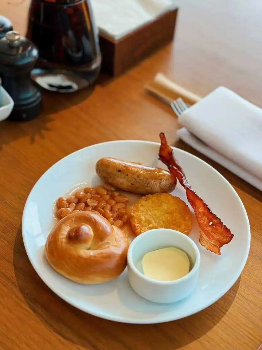 “聪明人会卡在上午11点左右去,赶最后一波自助早餐。里面的主食通常有炒饭和牛肉面,虽然没有正式的炒菜,但至少有水煮蛋、炒青菜,还有香肠、培根等优质蛋白质,用来当午餐也毫无问题。这相当于吃了一顿brunch,花不到10块钱解决了两顿,堪称是工作餐的终极解法。”
