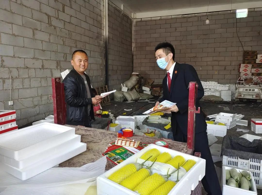 该院干警在瓜菜市场开展法治宣传场景