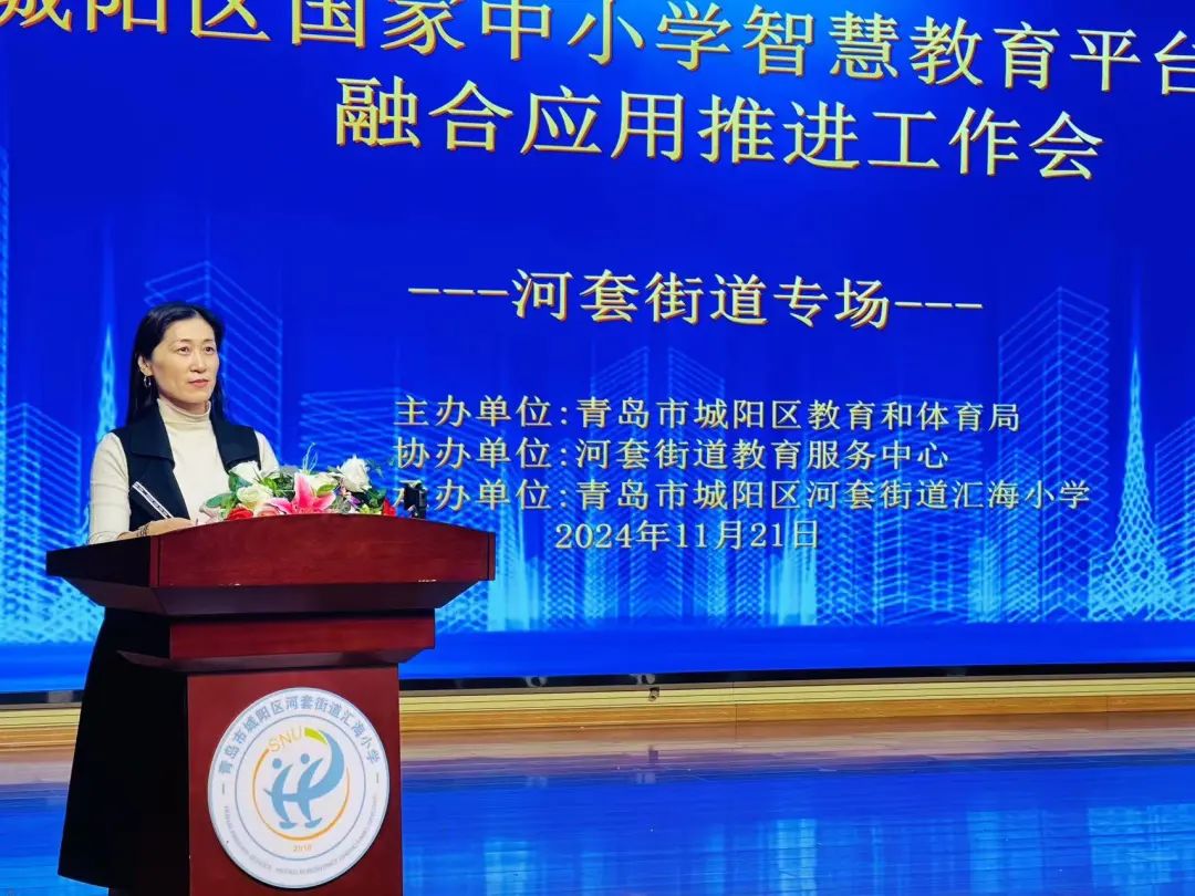 近日,国家中小学智慧教育平台融合应用推进工作会(河套专场)在河套街道汇海小学举行。各街道教育服务中心分管负责同志,区教育体育局装备与信息技术科负责同志,区教研室相关学科教研员,棘洪滩、上马、红岛、河套街道中小学校分管副校长及学科骨干教师参会。
