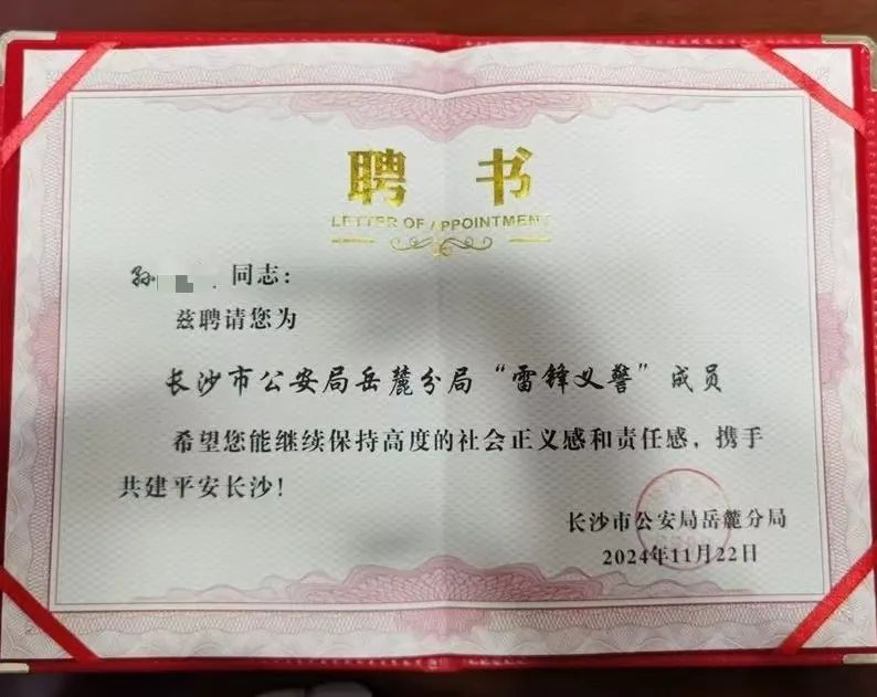 目前,长沙市“雷锋义警”正持续招募中,欢迎各位热心于公益事业,符合条件的朋友们加入。加入“雷锋义警”实行实名制,申请人可到实际居住地、就业地或就学地派出所申报。