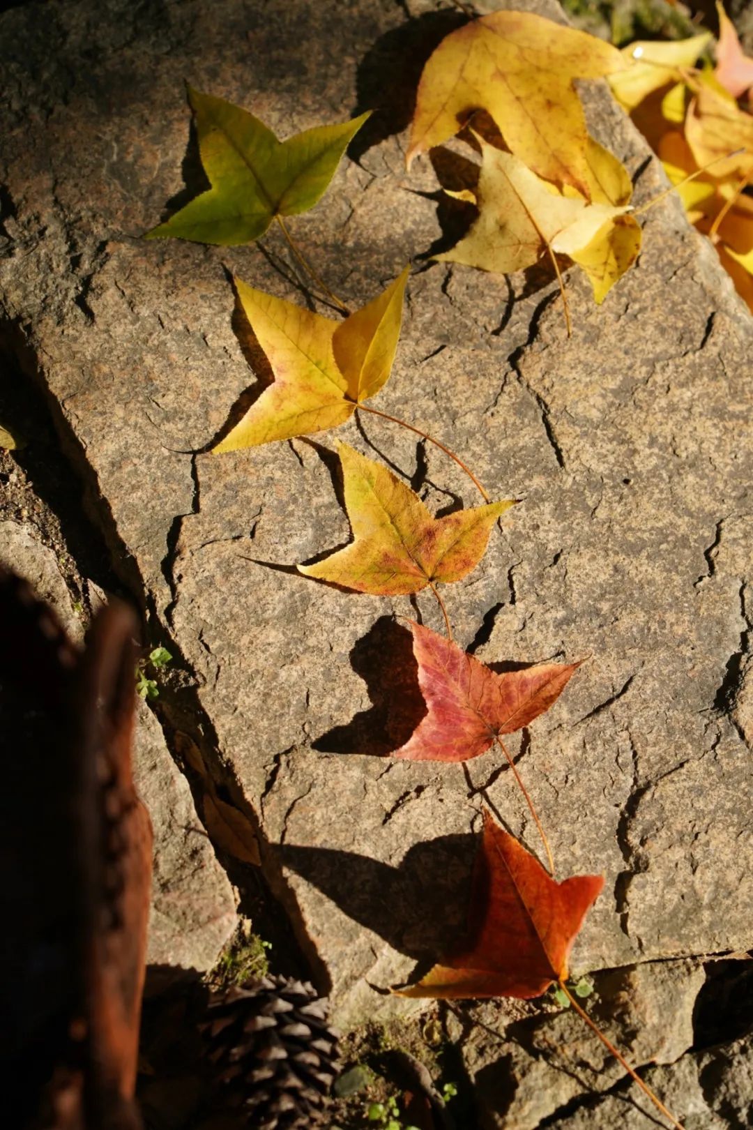 每每看到这些五彩落叶,也许身处各地的我们会产生一些共鸣......