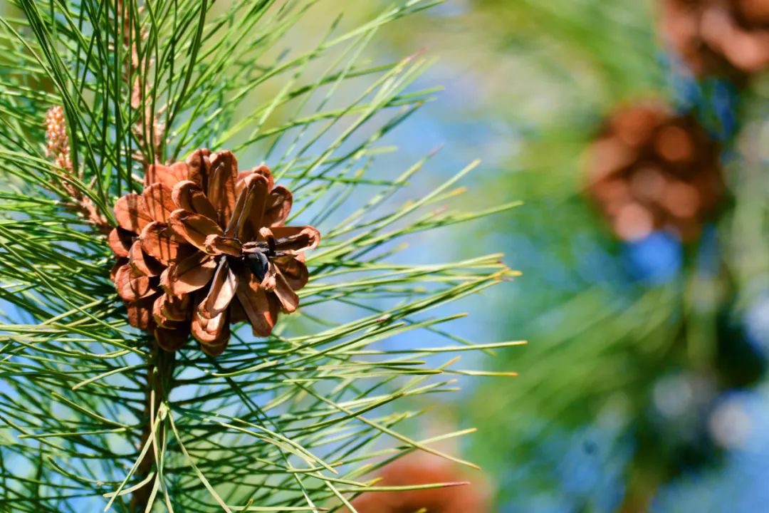 松科植物的果实,是自然界中独特而美丽的果实,也是松鼠、鸟类等许多动物的储备粮食。其外形独特,层层叠叠的种鳞紧密相拥,表面通常有一层保护性的蜡质,鳞片之间有缝隙,使果子具有一定透气性,外形整体更像一座小型峰塔。