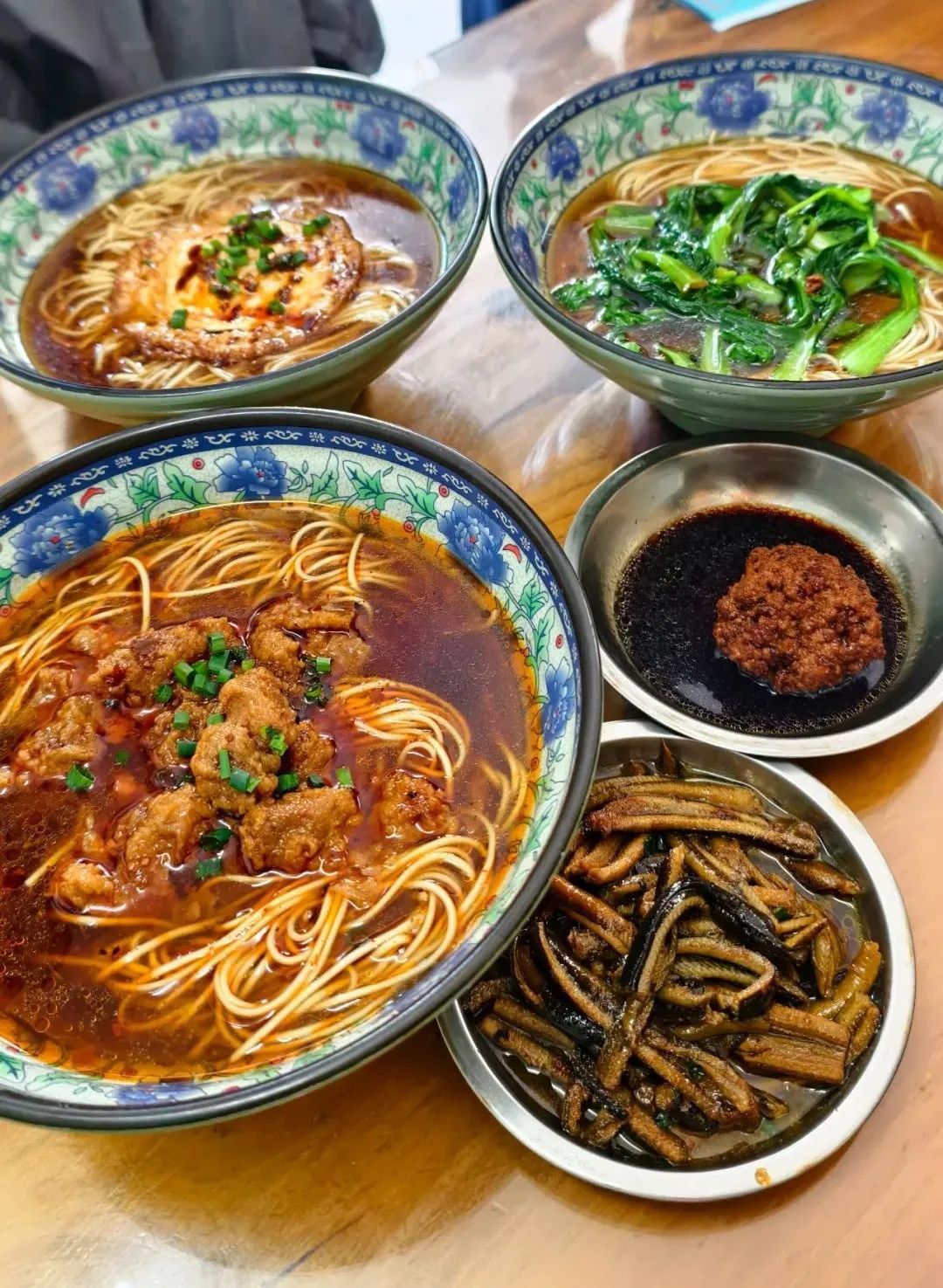 桃源埔社区的好兄弟面馆,他家的鳝丝面,相信青浦人都不陌生。每年限时供应的鳝丝面,是由老板亲自挑选的新鲜鳝鱼所制成,鳝鱼肉质鲜美、营养丰富,再经过浓油赤酱的烹饪,搭配筋道的面条,那鲜美的口感,仿佛在舌尖上跳跃。预算充足的,建议直接混搭浇头,享受味蕾巅峰感受。