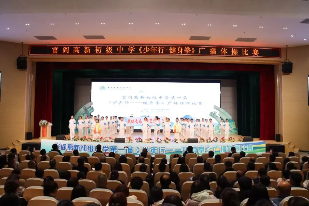11月22日下午,富阎高新初级中学举行第一届“少年行 健身拳”武术操比赛。航空基地富阎产业园管委会副主任张景龙,西安高新一中初中校区教育联合体副校长董军,富平县教体局党委委员、教师发展中心主任王智平,园区管委会、县教体局相关部门领导,富平县城区各中学、小学领导,富阎高新初级中学全体师生参加,西安高新一中初中校区体育组老师担任本次活动裁判。富阎高新初级中学校长李政致辞并宣布比赛开始。
