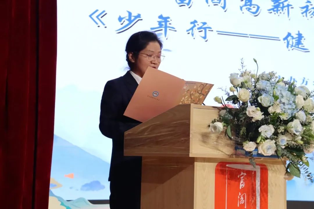 富阎高新初级中学教师发展中心主任牛敬芳作总结讲话,她高度肯定了全校全体师生对此次“少年行 健身拳”武术操比赛的重视、努力与表现,并寄语同学们,希望大家能以本次武术操比赛为契机,把比赛中表现出的勇往直前、团结向上的斗志,锲而不舍、奋力拼搏的精神带到自己的学习生活中,成为有理想、有本领、有担当的时代少年。