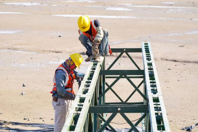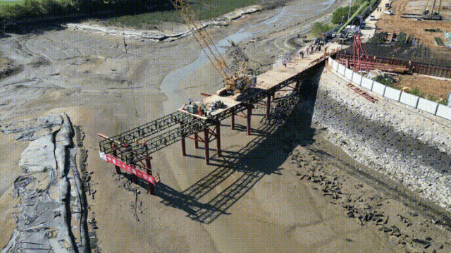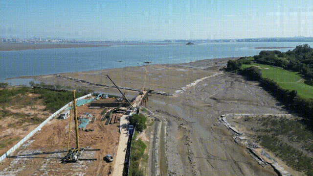 在市区两级政府和主要部门的支持下,项目在近日完成用海手续的办理,并获得桥梁海上段的施工许可,项目得以加快推进。目前,项目控制性节点正在进行中,预计2026年7月将全面开放通车。