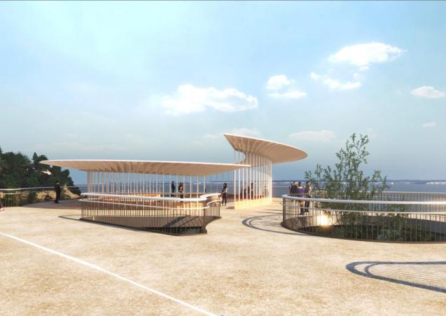 通过相连的四个环形平台打造观景区,设有景观环廊,人们可在此休憩,并拥有广阔的观景面。