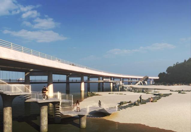 此外,在鳌冠社区靠海一侧,人行桥将与主桥面并行,行人在桥上就可以欣赏海蚀地貌、红树林、沙滩等特色景观。