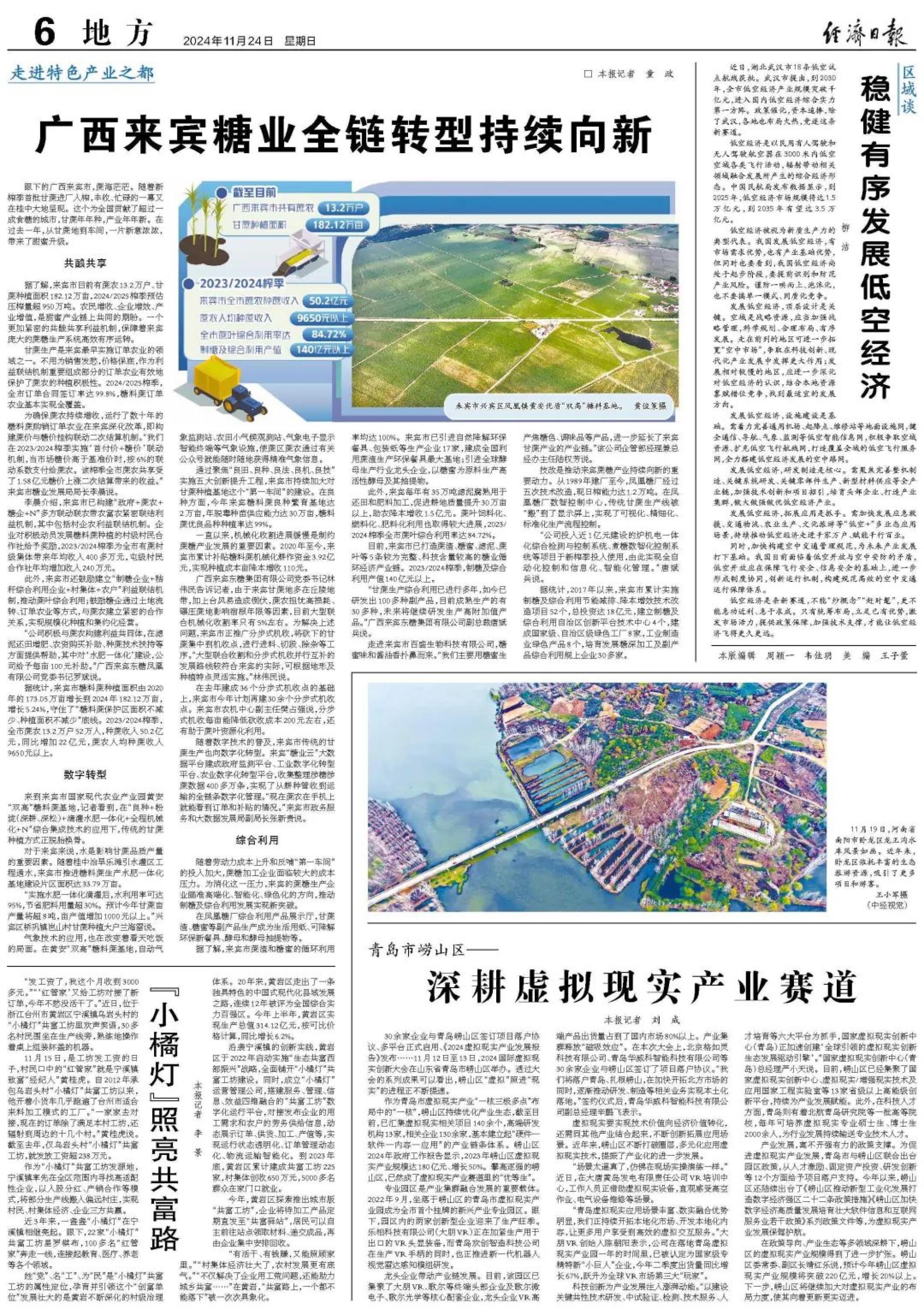 目前,来宾市已打造蔗渣、糖蜜、滤泥、蔗叶等5条较为完整、科技含量较高的糖业循环经济产业链。2023/2024榨季,制糖及综合利用产值140亿元以上。