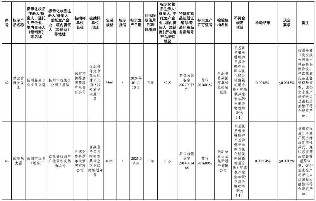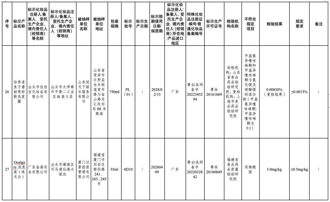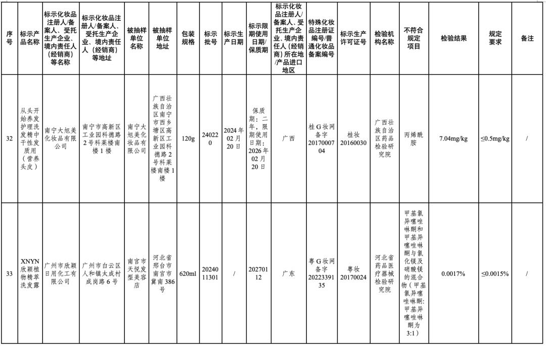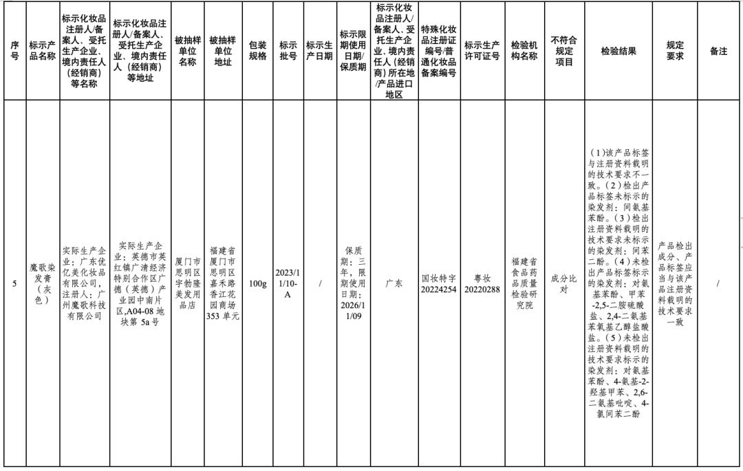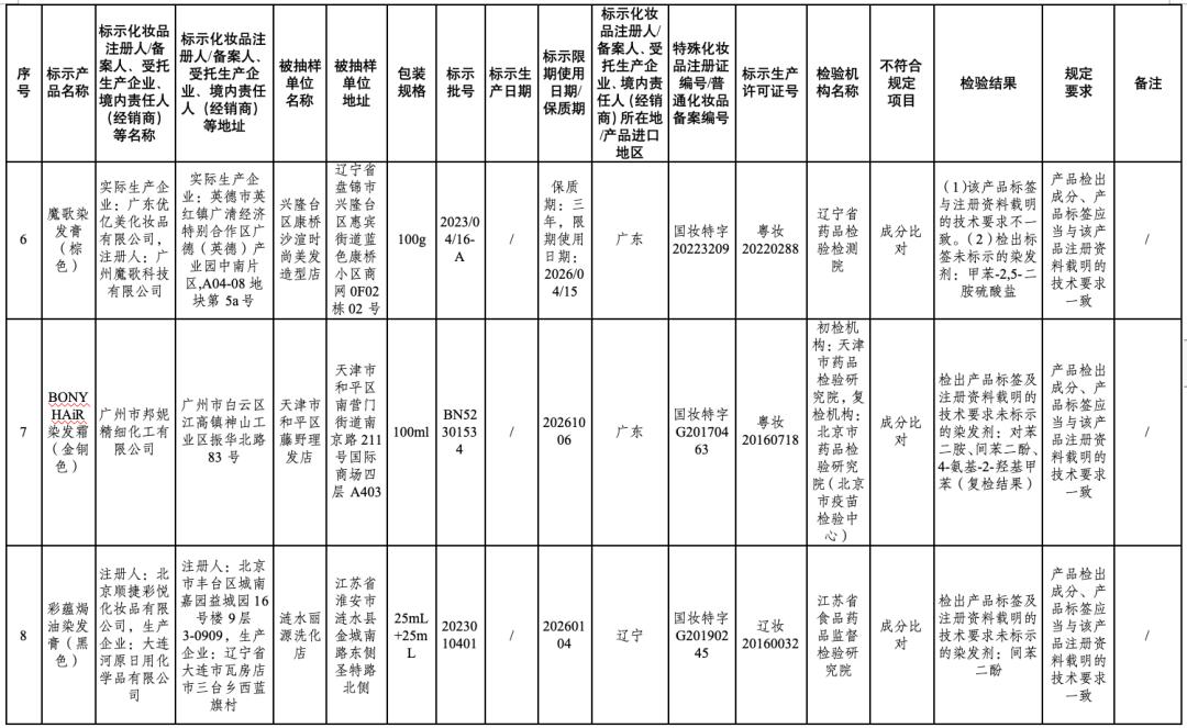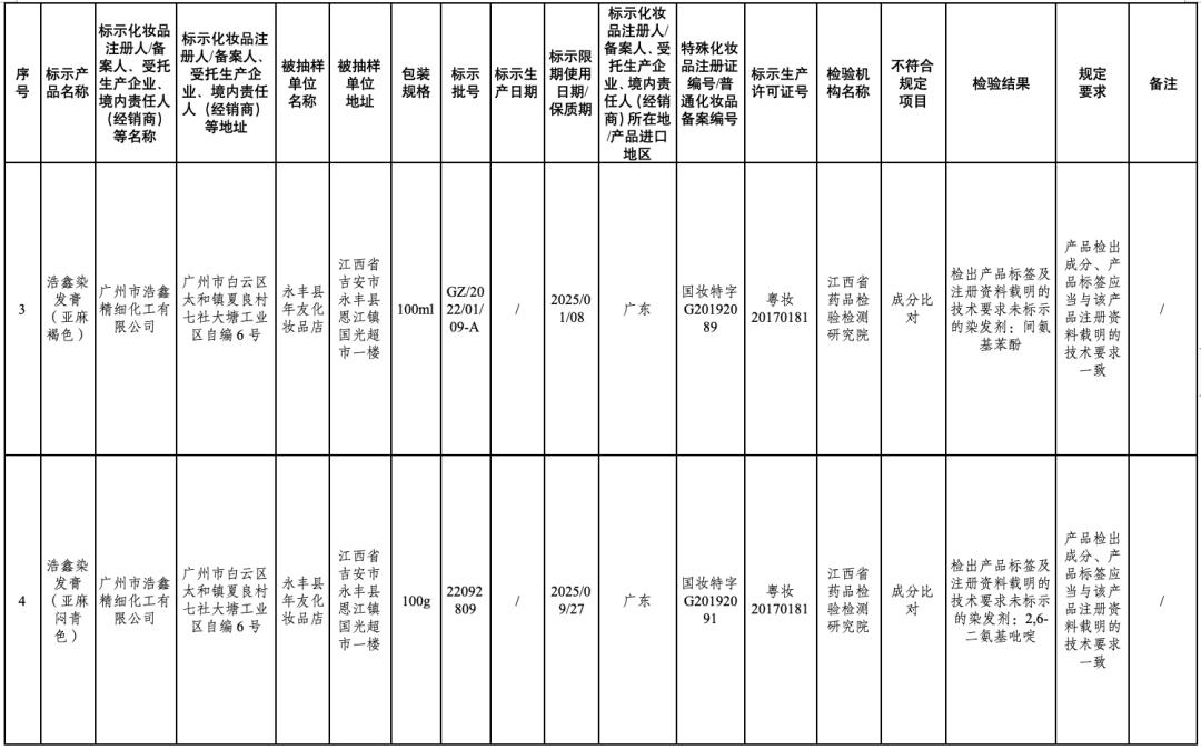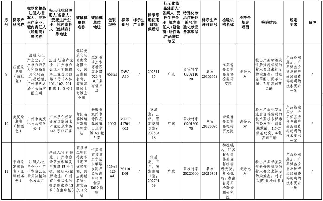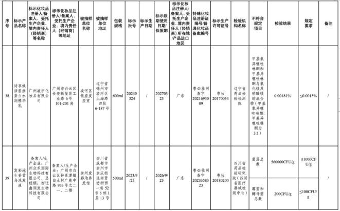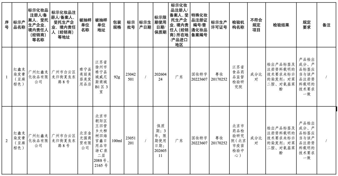 ↑点击图片查看通告全文在2024年国家化妆品抽样检验工作中,经江苏省食品药品监督检验研究院等单位检验,产品标签标示为广州红鑫龙化妆品有限公司生产的红鑫龙染发膏(亚麻棕色)等50批次化妆品不符合规定(见附件)。