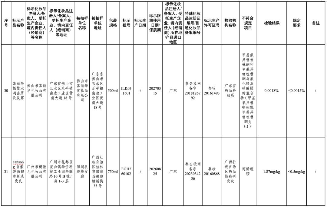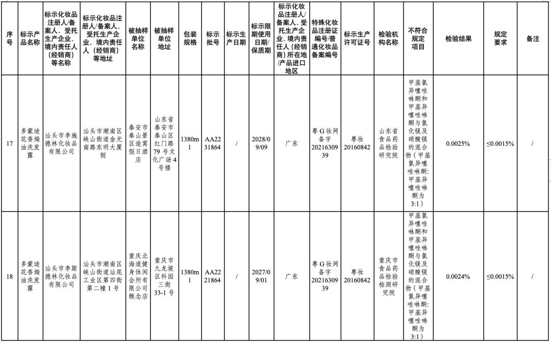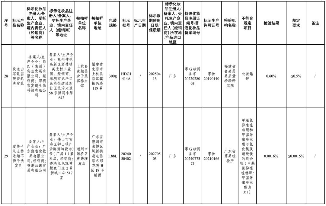附件:50批次不符合规定化妆品信息