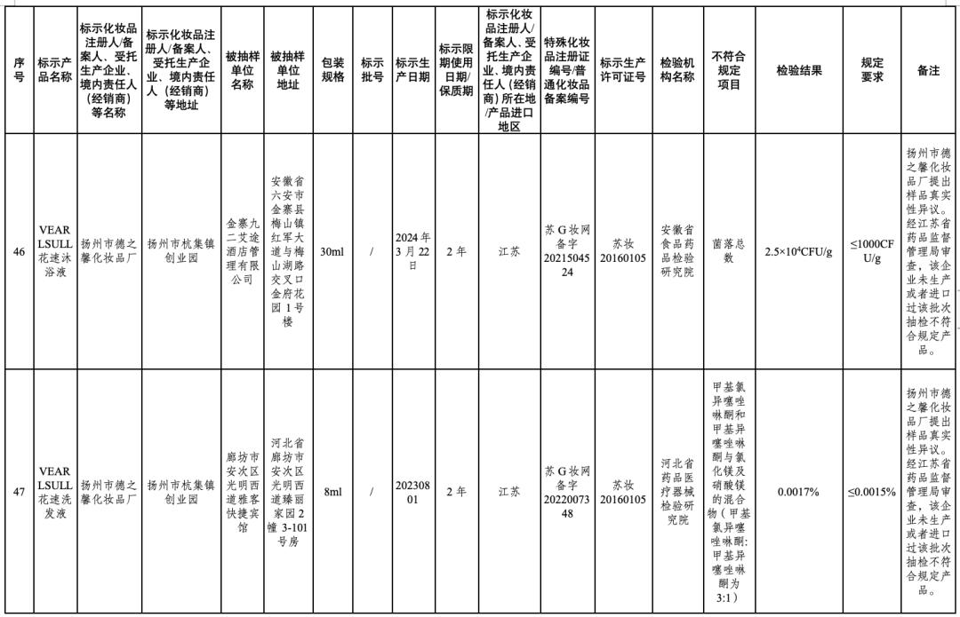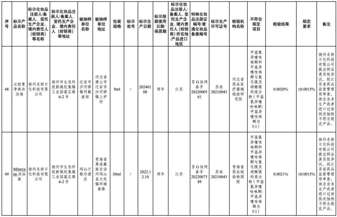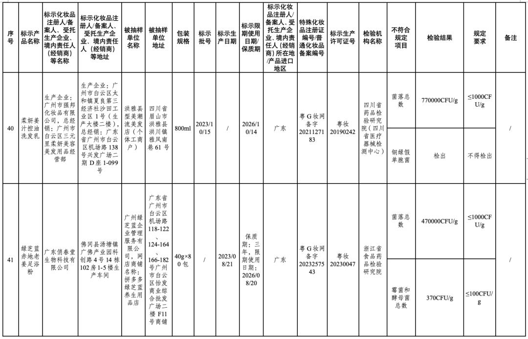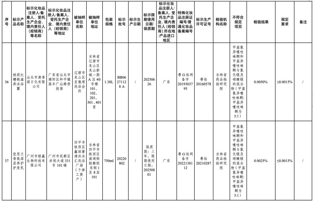 50批次不符合规定化妆品信息
