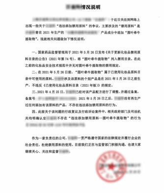 近日,上海市药品监督管理局宣布对某化妆品涉嫌添加禁用原料进行立案调查。该品牌在针对此事的情况说明中表示,自 2021 年 5 月 26 日之后,再也没有生产过任何添加有圆叶牵牛提取物的产品,自身不存在违法添加禁用原料(此处指“圆叶牵牛提取物”)的行为。该消息登上热搜,也让“圆叶牵牛提取物”进入更多人视野。