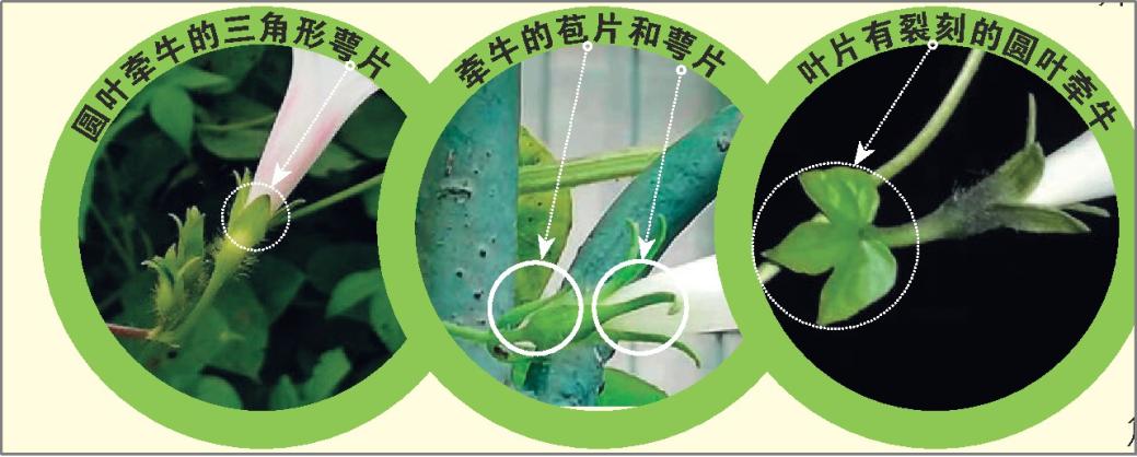 之所以得名圆叶牵牛,并不是说它的叶片是真正的圆形。答案的关键就是萼片——圆叶牵牛的萼片为圆钝的三角形,普通牵牛的萼片则为披针形。