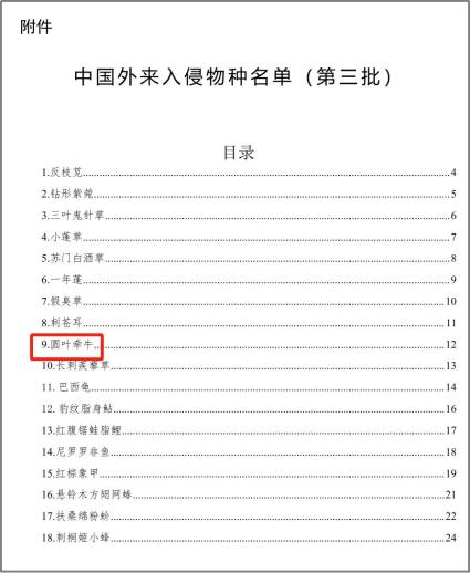 图源:生态环境部《关于发布中国外来入侵物种名单(第三批)的公告》附件:中国外来入侵物种名单(第三批)