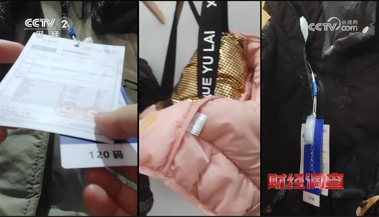 记者又来到江西九江一家名为胖瓜童装工厂店的儿童羽绒服装企业,工作人员对记者说,他们既生产合格羽绒服,也生产不合格羽绒服,他们会把合格羽绒服的检测报告用在不合格的产品上。