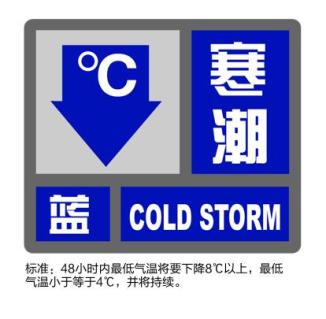 上海中心气象台2024年11月25日17时00分发布寒潮蓝色预警信号:受强冷空气影响,预计48小时内全市大部分地区最低气温降幅可达8-9度,28日早晨市区最低气温3度,郊区1度左右,请注意防范大风、强降温带来的不利影响。