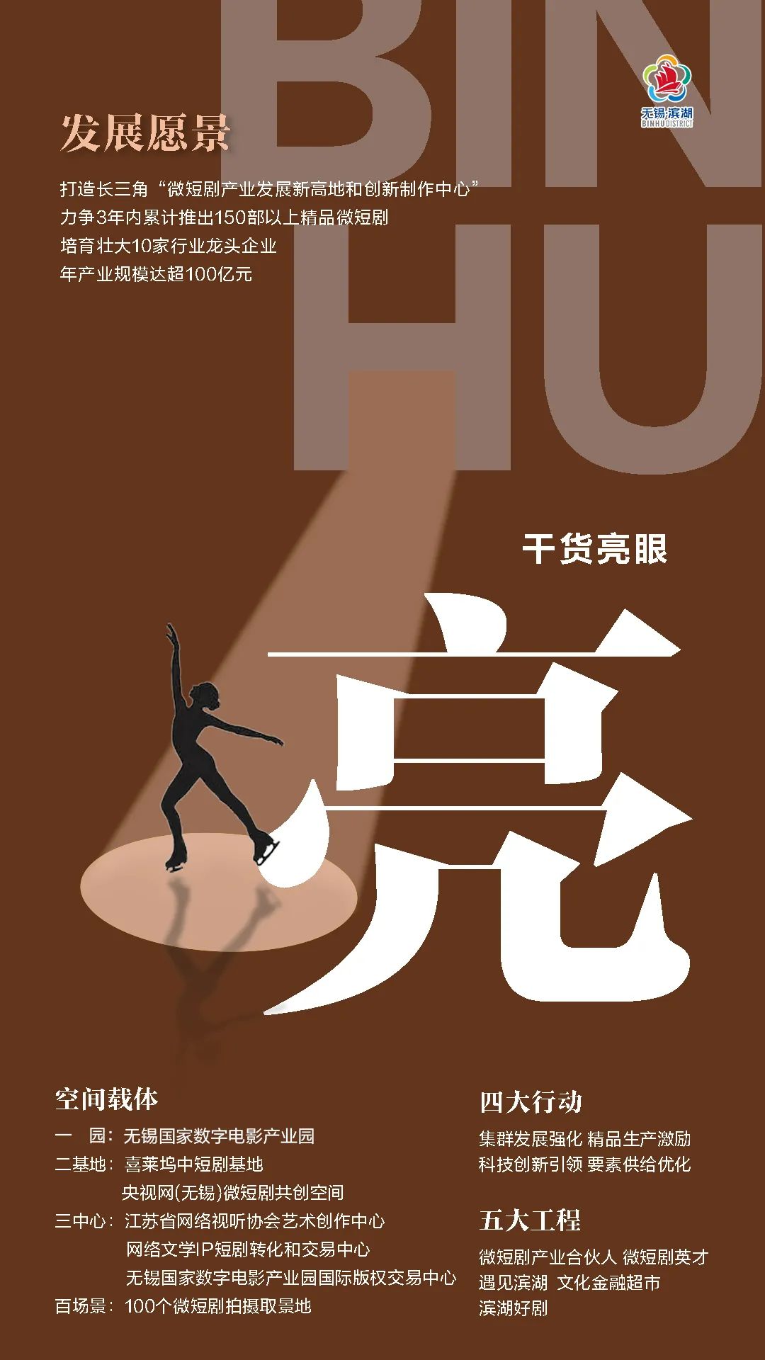 针对近两年潜力不断释放的微短剧市场,滨湖区也及时推出了全新政策举措,以“剧亮影擎”计划为统揽,通过开展集群发展强化、精品生产激励、科技创新引领、要素供给优化等四大行动,实施“微短剧产业合伙人”“滨湖好剧”“跟着微短剧游滨湖”“文化金融超市”“微短剧英才”等五大工程,为微短剧产业提供了全方位的政策扶持和保障。今后,滨湖将继续大力发展数字影视短剧、创意设计等产业,支持文化企业做大做强,全面提升文化产业核心竞争力。
