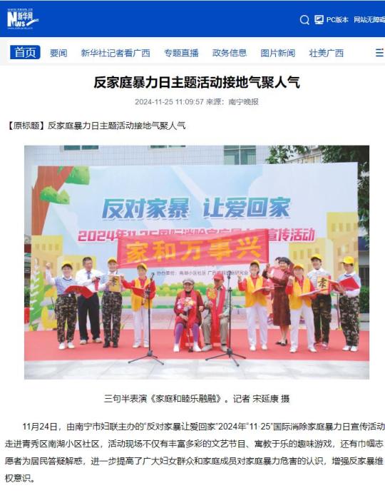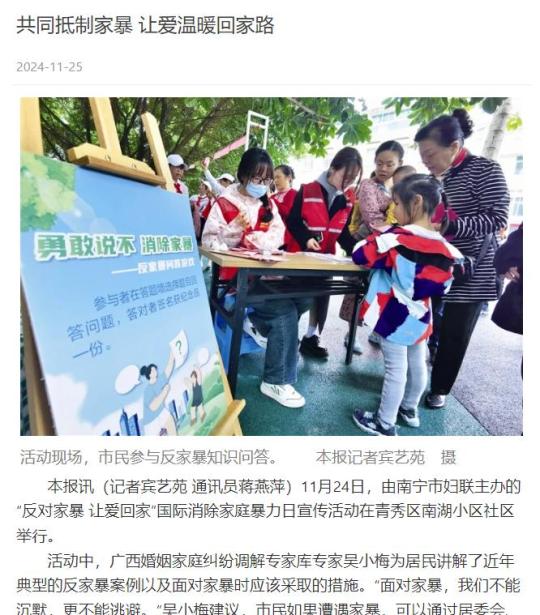 媒体关注 | 南宁反家庭暴力日主题活动接地气聚人气