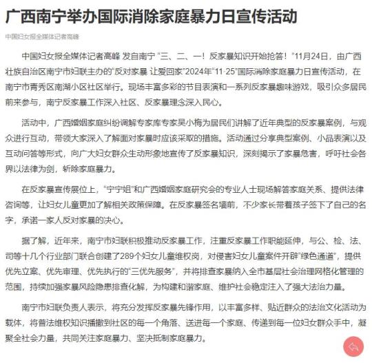 原标题:《媒体关注 | 南宁反家庭暴力日主题活动接地气聚人气》