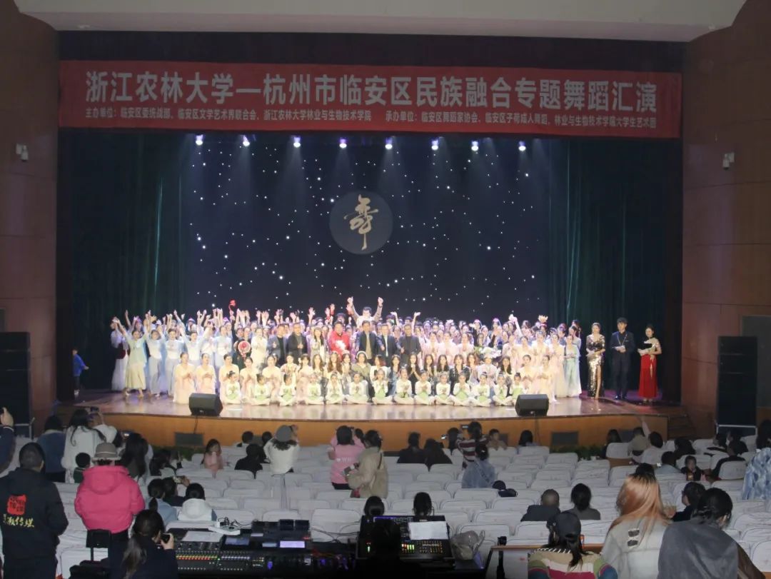 为进一步铸牢中华民族共同体意识,弘扬中华民族优秀传统文化,展现当代大学生对多元民族文化的热爱与传承,为各民族群众提供一个展示自我、交流才艺的平台,11月23日,由临安区委统战部、临安区文学艺术界联合会、浙江农林大学林业与生物技术学院主办,临安区舞蹈家协会、子荷成人舞蹈、林业与生物技术学院大学生艺术团承办的浙江农林大学—杭州市临安区民族融合专题舞蹈汇演在浙江农林大学东湖校区影剧院圆满举办。