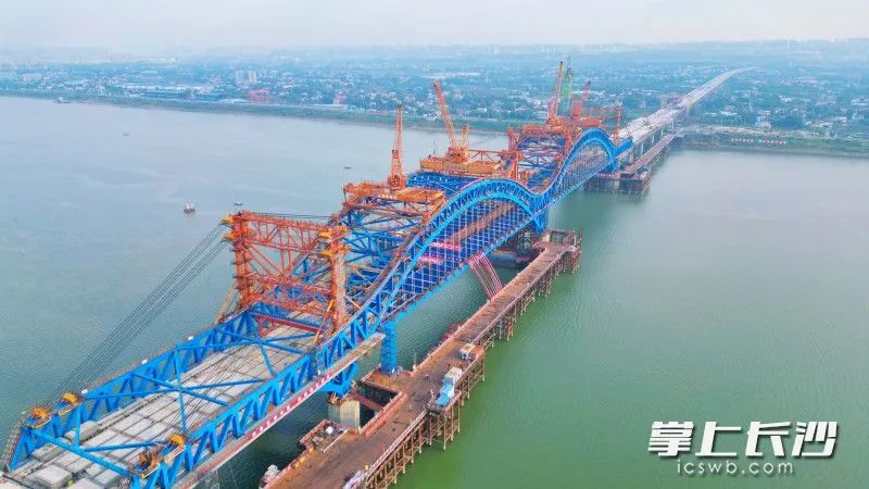 “暮坪湘江特大桥主跨为2跨,每跨180米,共有78个节段,钢结构吊装单元有近4000个,梁段间采用全焊连接,主桥上部钢结构总用钢量达1.6万吨。”长沙城发集团项目负责人介绍,大桥采用钢桁架飞燕式拱桥形式,造型就像飞燕展翅,具有跨越能力大、承载能力高、自身稳定性强等优点,符合实用与美观相结合的建设要求。“大桥合龙后,下一步将进行人行道挑臂安装、桥面板铺设、外漆喷涂等施工,力争项目早日建成通车。”