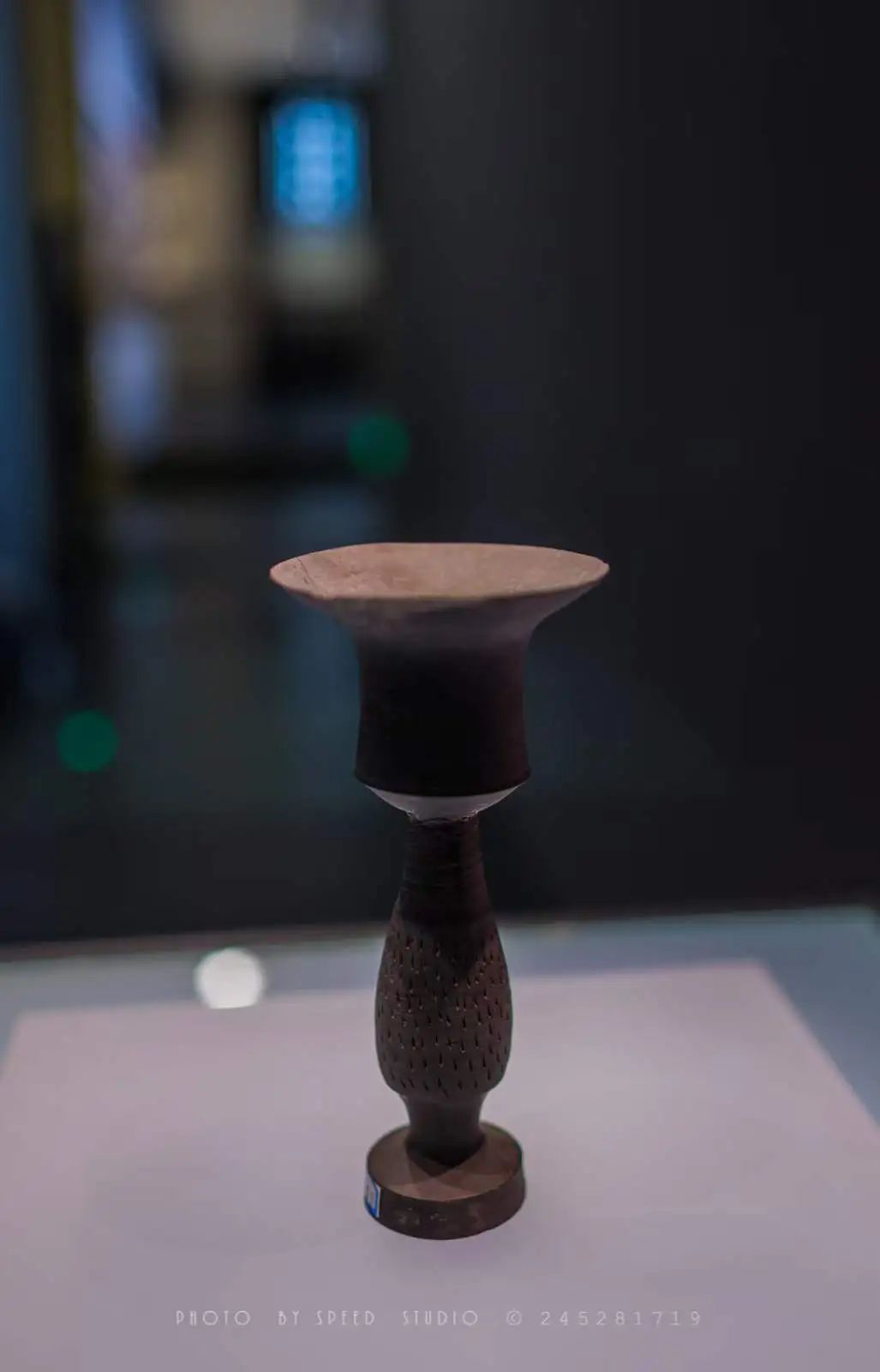 日照市博物馆镇馆之宝——龙山文化时期蛋壳黑陶镂孔高柄杯,制作技艺美妙绝伦,是我国古代制陶艺术的巅峰之作,被誉为“原始文化的瑰宝”。