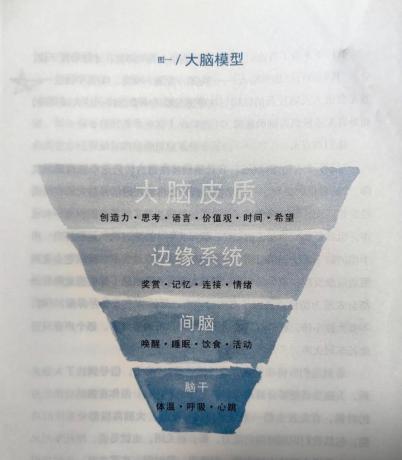 大脑就像一块奶油蛋糕一样,可以分为四层,顶层叫做大脑皮质,可以叫做「智能脑」,是我们思考、策划、做计划、学语言、形成价值观等最智能的区域。