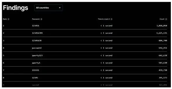 在中国,情况同样不容乐观。位居前十的密码中,除了与全球榜单相似的简单数字组合外,还出现了如“11111111”、“000000”和“00000000”等更加简单的密码。这些密码的破解时间同样不到1秒,给中国用户的账户安全带来了极大的风险。