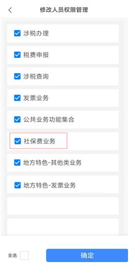 申税小微,我们新入职的办税员在登录电子税务局App后没有【社保业务】的模块,请问该如何为他们添加相关权限呢?