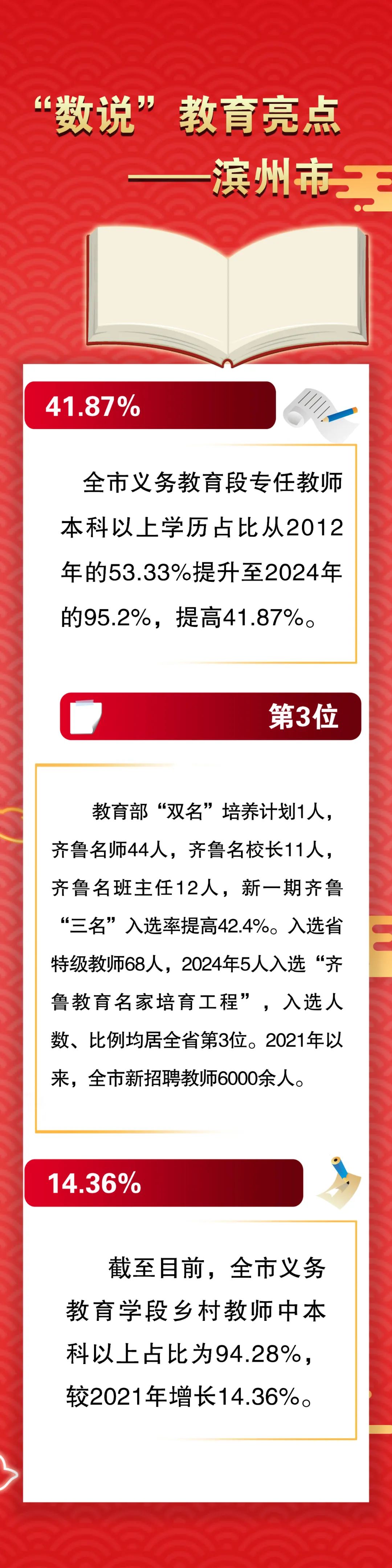今天,“奋进教育强国路 奋力当好排头兵”专栏之“山东教育成就巡展”系列,通过数据及图文,介绍了滨州市在教师队伍建设上的工作经验——