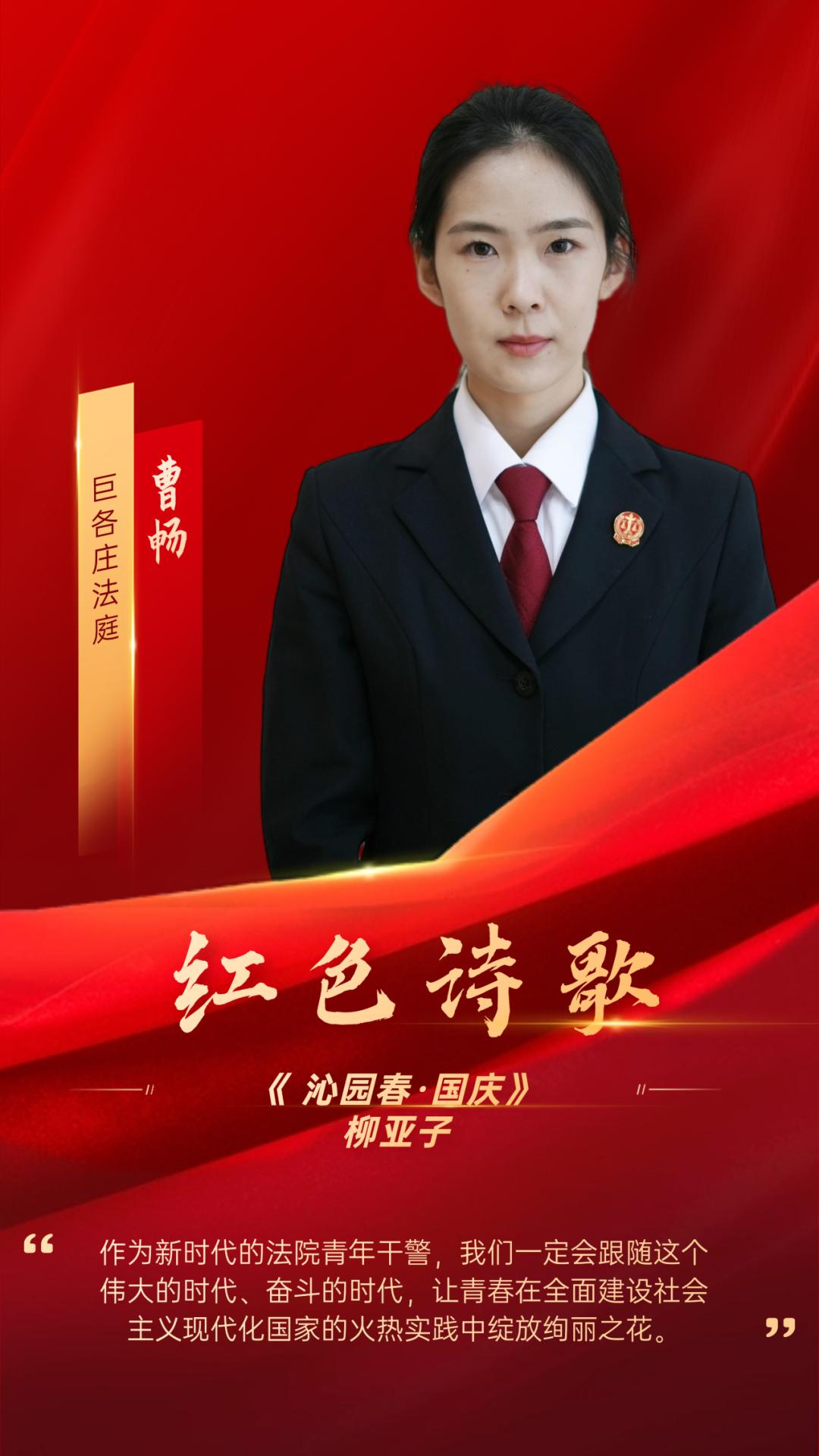作为新时代的法院青年干警,我们一定会跟随这个伟大的时代、奋斗的时代,让青春在全面建设社会主义现代化国家的火热实践中绽放绚丽之花。主讲人丨曹畅