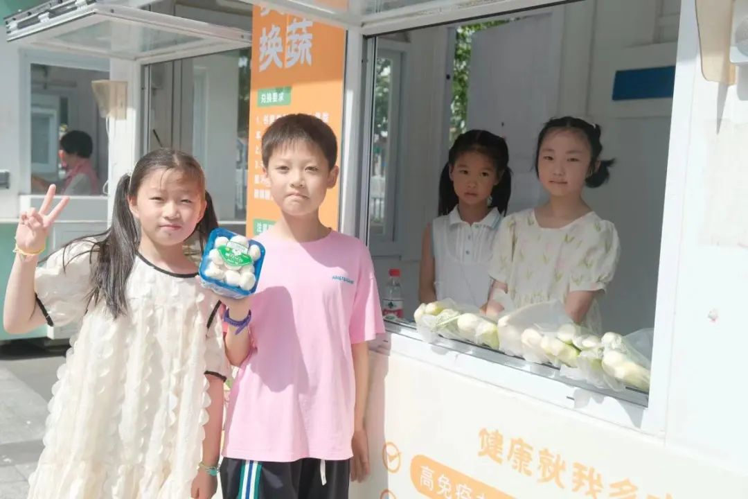 吕女士是其中一个摊位的志愿者,早上9点她就带着孩子一起来做公益。“菠菜、西蓝花最受欢迎,一早上已经有十多位居民来兑换了。”文小社公益服务中心负责人张丽娜表示,这次招募的摊主都是小朋友,他们可以在义卖中体验“主人翁”意识,从小亲身实践做公益、献爱心。
