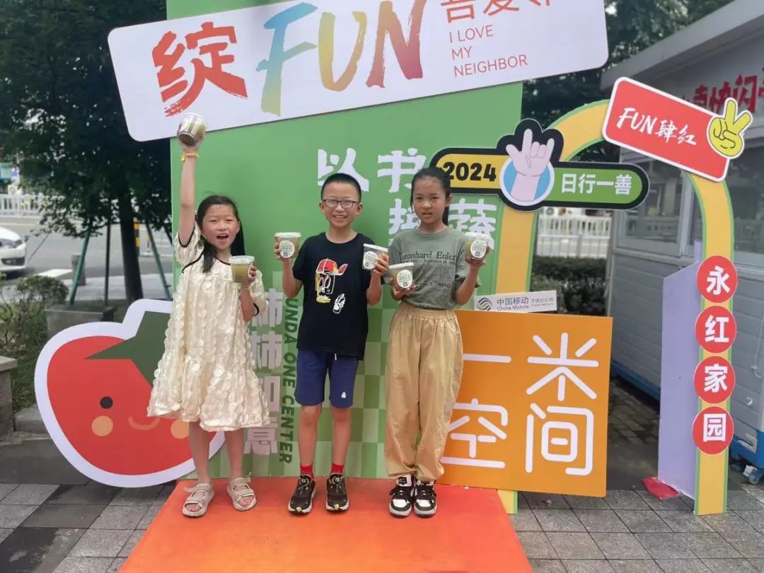 除了“以书换蔬”的公益活动外,本次公益集市还设置了一米空间的打卡点。活动上,还提供免费绿豆汤,参与留影打卡的居民即可领取,享受一份夏至的清凉。不少路过的居民被活动吸引,纷纷驻足打卡,现场热闹非凡。