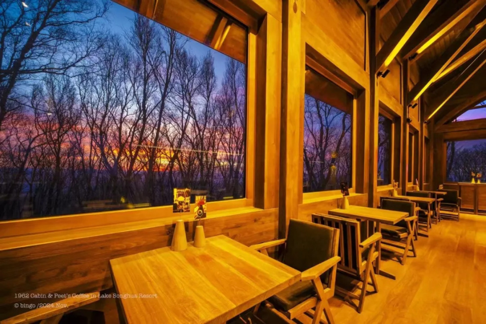 在万科松花湖度假区1962木屋观赏落日美景,感受岁月静好。